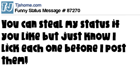 - # 174530 You can steal my status updates but you should know I lick every one of them before I post them.