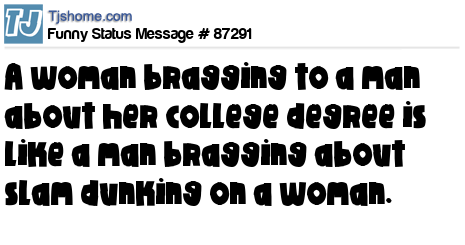 X A woman bragging to a man about her college degree is like a man bragging about slam dunking on a woman.