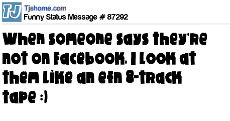 X is When someone says they're not on Facebook, I look at them like an efn 8-track tape :)