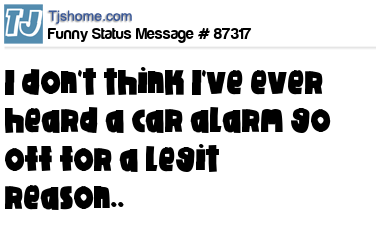 X is I don't think I've ever heard a car alarm go off for a legit reason..