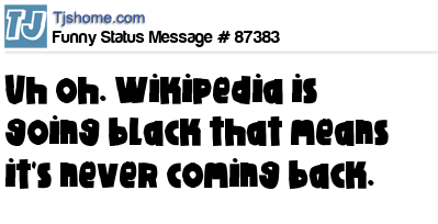 X Uh oh. Wikipedia is going black that means it's never coming back.