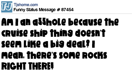 X is Am I an a55hole because the cruise ship thing doesn't seem like a big deal? I mean, there's some rocks RIGHT THERE!