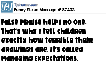 X False praise helps no one. That's why I tell children exactly how terrible their drawings are. It's called Managing Expectations.
