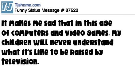 X It makes me sad that in this age of computers and video games, my children will never understand what it's like to be raised by television.