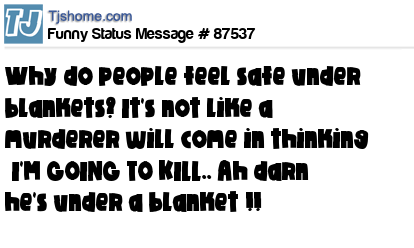 - # 92364 Why do we feel safe under a blanket? It's not like a murderer will come thinking "I'm going to ki....Oh damn they're under a blanket!"