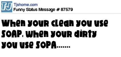 X says When your clean you use SOAP, when your dirty you use SOPA.......