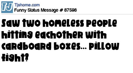 - # 111527 Just saw 2 homeless guys hitting each other with pieces of cardboard.....PILLOW FIGHT