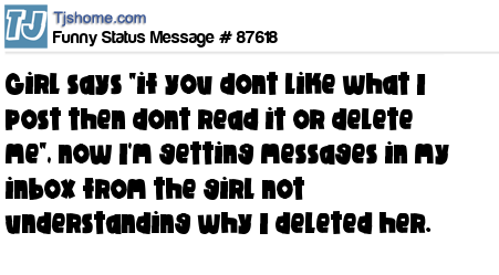 X Girl says "if you dont like what I post then dont read it or delete me", now I'm getting messages in my inbox from the girl not understanding why I deleted her.