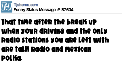 X That time after the break up when your driving and the only radio stations you are left with are talk radio and mexican polka.
