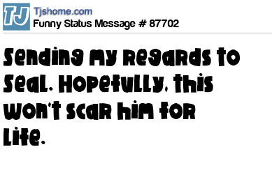 X Sending my regards to Seal. Hopefully, this won't scar him for life.
