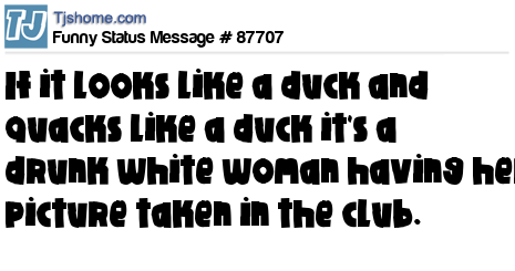 X is If it looks like a duck and quacks like a duck it's a drunk white woman having her picture taken in the club.