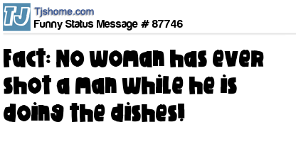 X says Fact: No woman has ever shot a man while he is doing the dishes!