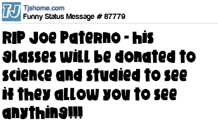 - # 87782 rip joe paterno - his glasses will be donated to science and studied to see if they allow you to see anything!!