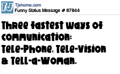X is Three fastest ways of communication: Tele-Phone, Tele-Vision & Tell-a-Woman.