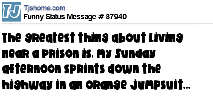 X The greatest thing about living near a prison is, my Sunday afternoon sprints down the highway in an orange jumpsuit...