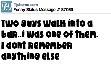 - # 23555 Two guys walk into a bar. I was one of them. I don't remember anything else..
