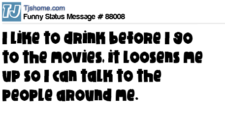 X says I like to drink before I go to the movies, it loosens me up so I can talk to the people around me.
