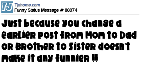 X is Just because you change a earlier post from Mom to Dad or Brother to Sister doesn't make it any funnier !!