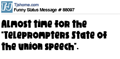 X Almost time for the "Teleprompters State of the union speech".