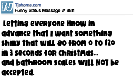 X letting everyone know in advance that I want something shiny that will go from 0 to 120 in 3 seconds for Christmas... and bathroom scales WILL NOT be accepted.