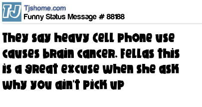 X says They say heavy Cell phone use causes brain cancer. Fellas this is a great excuse when she ask why you ain't pick up
