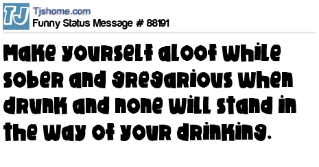 X says Make yourself aloof while sober and gregarious when drunk and none will stand in the way of your drinking.