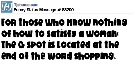 X says For those who know nothing of how to satisfy a woman: The G spot is located at the end of the word shopping.