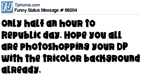 X says Only half an hour to Republic day. Hope you all are photoshopping your DP with the tricolor background already.