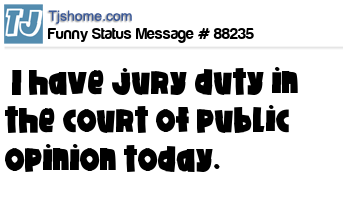 - # 13218 Damn court sux. If I ever got pooled 4 jury duty I would start all my answers w/ "According to the phrophecy..."