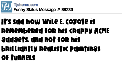 - # 138321 It's sad how Wile E. Coyote is only remembered for his violence, and not for his brilliantly realistic paintings of tunnels.