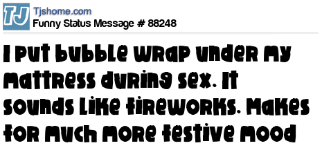 X is I put bubble wrap under my mattress during sex. It sounds like fireworks. Makes for much more festive mood
