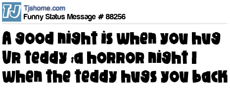 X is a good night is when you hug Ur teddy ;a horror night I when the teddy hugs you back