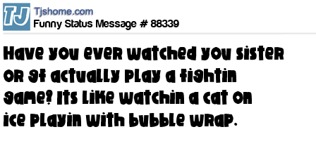 X is Have you ever watched you sister or gf actually play a fightin game? Its like watchin a cat on ice playin with bubble wrap.
