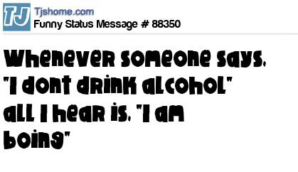 - # 88352 Whenever someone says, "I dont drink alcohol" all I hear is, "I am boring"
