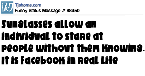 - # 97053 Sunglasses allow an individual to stare at people without them knowing. It is Facebook in real life.