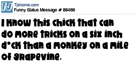 X I know this chick that can do more tricks on a six inch d*ck than a monkey on a mile of grapevine.