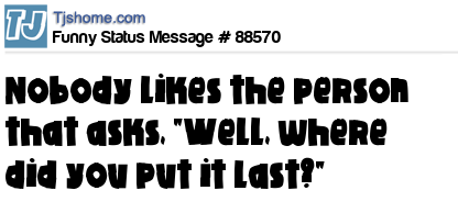 X says Nobody likes the person that asks, "Well, where did you put it last?"