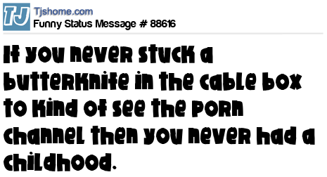 X If you never stuck a butterknife in the cable box to kind of see the porn channel then you never had a childhood.