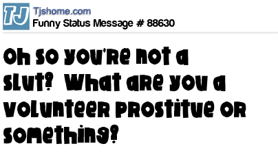 - # 168676 OK, You're telling me you're not a slut ..... So ... Does that mean you are some kind of volunteer prostitute or something?
