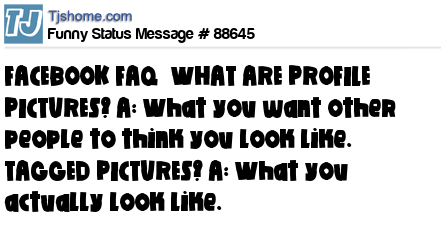 - # 88452 PROFILE PICTURES: What people want other people to think they look like. TAGGED PICTURES: What they actually look like.