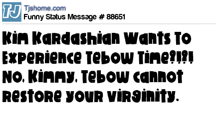 X says Kim Kardashian Wants To Experience Tebow Time?!?! No, Kimmy, Tebow cannot restore your virginity.