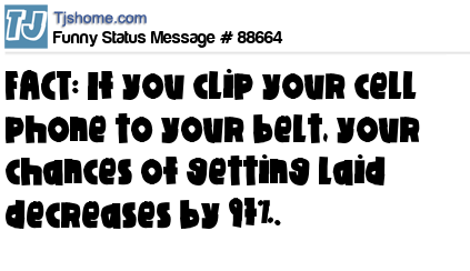 X says FACT: If you clip your cell phone to your belt, your chances of getting laid decreases by 97%.