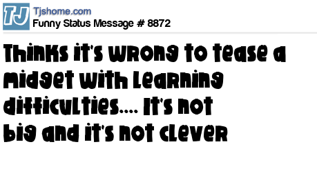 X  thinks it's wrong to tease a midget with learning difficulties.... It's not big and it's not clever