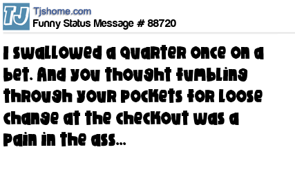 X I swallowed a quarter once on a bet. And you thought fumbling through your pockets for loose change at the checkout was a pain in the ass...