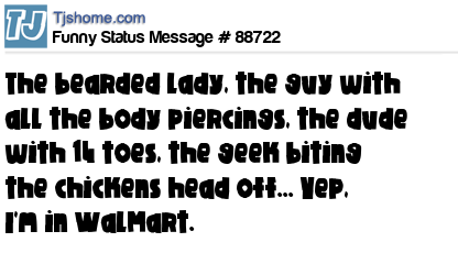 - # 94426 The entire freak show from the carnival was shopping at walmart and no one noticed....I gave a bearded lady a buck anyway