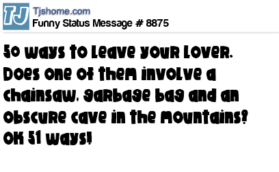 X 50 ways to leave your lover. Does one of them involve a chainsaw, garbage bag and an obscure cave in the mountains? Ok 51 ways!