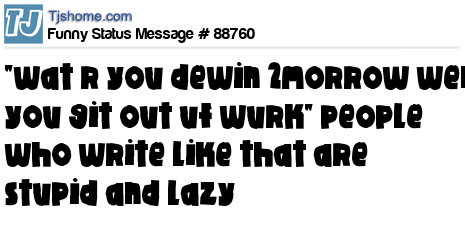X "wat r you dewin 2morrow wen you git out uf wurk" people who write like that are stupid and lazy