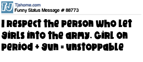 - # 106242 I respect whoever allowed women into the military. Girl on period + gun = unstoppable.