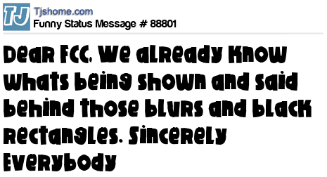 X is Dear FCC, We already know whats being shown and said behind those blurs and black rectangles. Sincerely Everybody