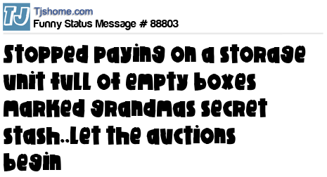 - # 88802 just stopped paying on a storage unit I filled with empty boxes marked electronics and grandmas jewelry...come n get it storage wars
